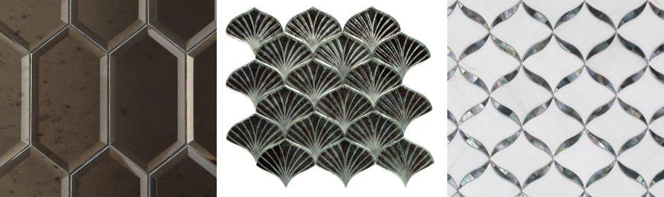 Key features are reflective glossy surfaces, geometric shapes and patterns, and metallics such as platinum, gold and chrome.. Key features are reflective glossy surfaces, geometric shapes and patterns, and metallics such as platinum, gold and chrome. You get the three dimensional look of the original collector relief tiles but on a flat smooth surface satin finish tile.